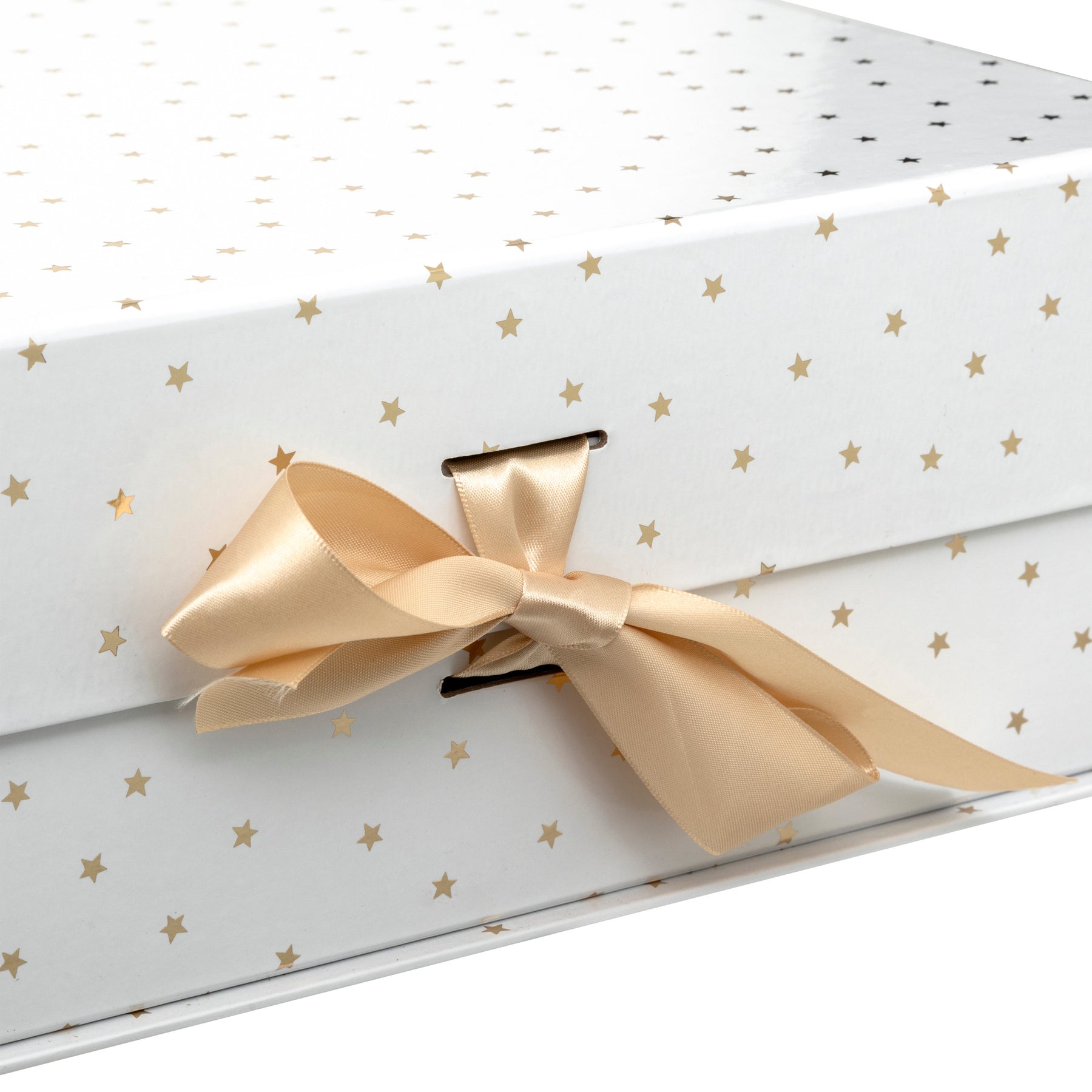 - Scatola in Carta Rettangolare Stelle e Fiocchi di Neve Bianco e Oro