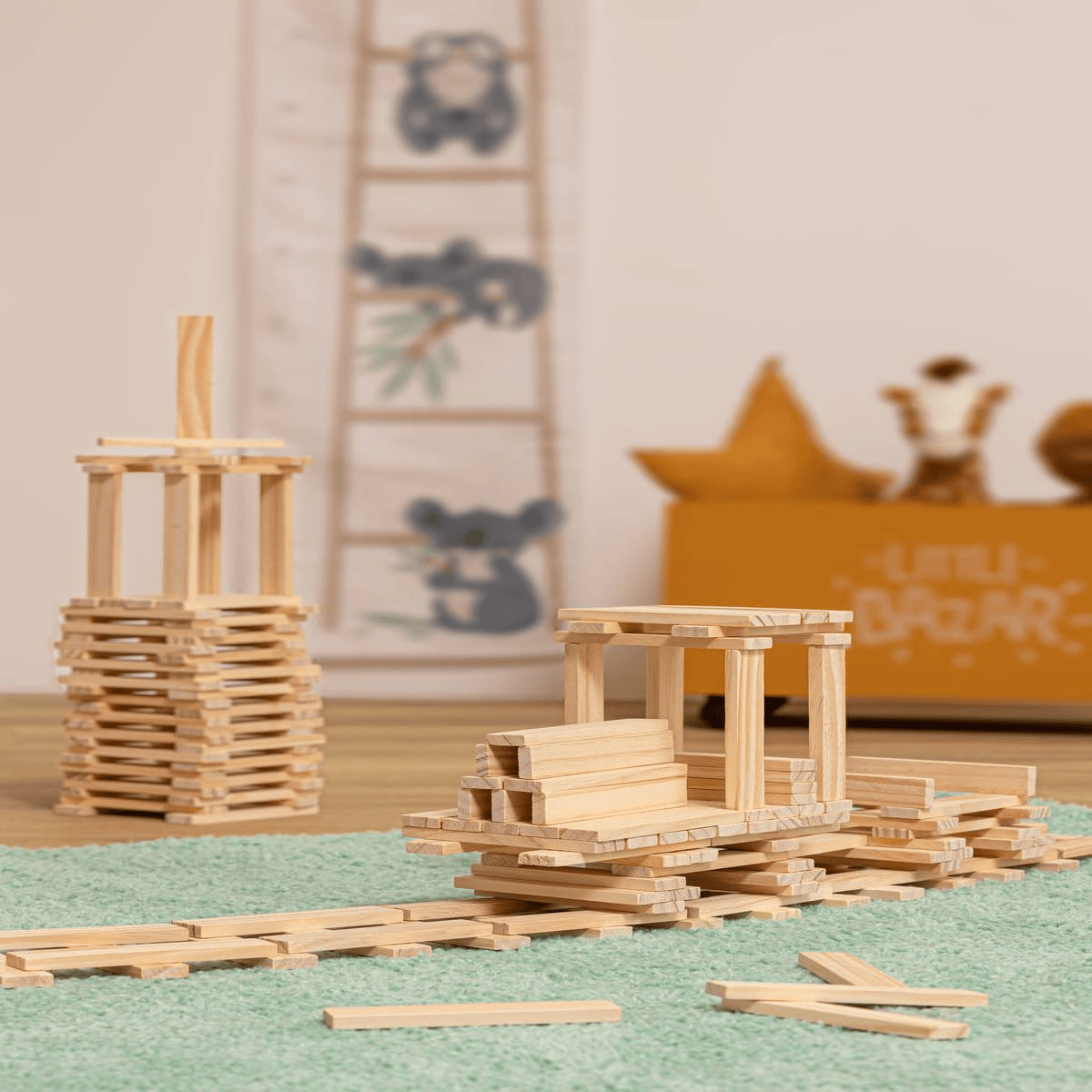 Questo set è perfetto per sviluppare le capacità motorie fini, la coordinazione occhio-mano e il pensiero spaziale. I bambini imparano a pianificare, a risolvere problemi e a lavorare in modo indipendente. Ma soprattutto, imparano a esprimere la propria individualità e a dare forma alle proprie idee. Il set costruzioni legno di Giustacchini è un'ottima alternativa ai giocattoli digitali, offrendo un'esperienza di gioco più tattile e sensoriale. I bambini possono toccare il legno, sentire la sua consistenza e apprezzare la sua naturale bellezza. Questo li aiuta a sviluppare un rapporto più profondo con il mondo che li circonda e a riscoprire il valore dei materiali naturali.