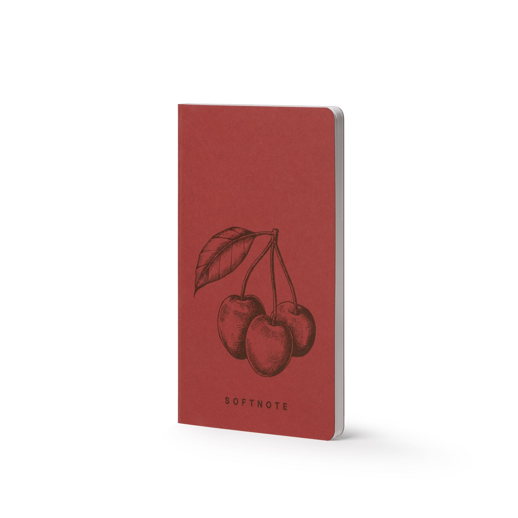 Con le sue dimensioni di 13 x 21 cm, il Taccuino Softnote si adatta perfettamente alla tua borsa o al tuo zaino, pronto ad accompagnarti ovunque tu vada. La copertina color ciliegia, vivace e accattivante, è impreziosita da un'illustrazione stilizzata di ciliegie, che aggiunge un tocco di originalità e freschezza al tuo strumento di scrittura. Questo dettaglio lo rende un oggetto unico, capace di esprimere la tua personalità e il tuo amore per la natura.