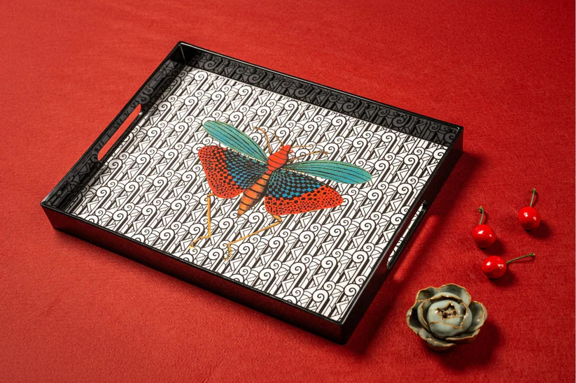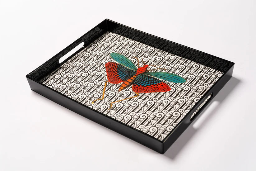 Blue Shaker Vassoio Laccato con Illustrazione Insetto 39 x 29 cm