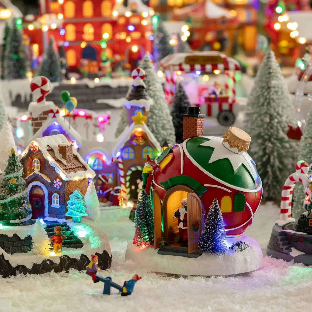 Ogni elemento di questa sfera è stato progettato con cura per creare un'esperienza visiva indimenticabile. I personaggi all'interno, tra cui Babbo Natale che saluta e un aiutante che scala una scala, aggiungono un tocco dinamico e giocoso. Le luci LED multicolore illuminano la scena, creando un'atmosfera magica che incanta chiunque la osservi. La combinazione di colori, movimenti e luci rende questa sfera un vero e proprio capolavoro di artigianato natalizio.