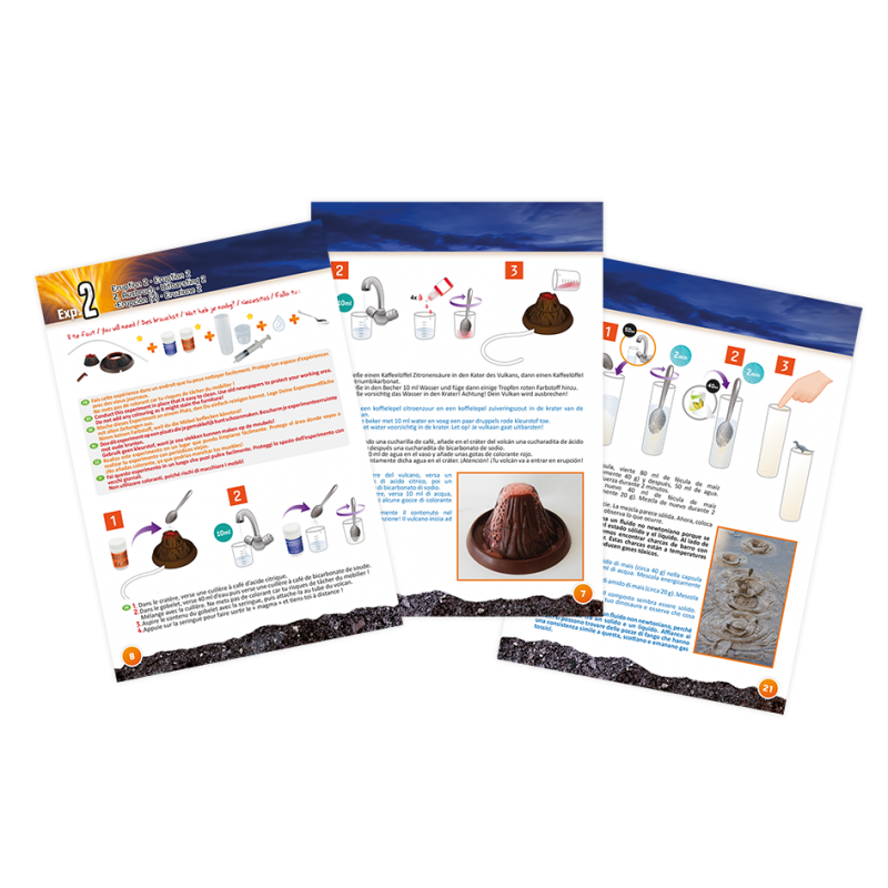 Il kit include tutto il necessario per simulare eruzioni vulcaniche realistiche, permettendo ai bambini di osservare da vicino la potenza della natura e di comprendere i processi geologici che danno origine a questi fenomeni spettacolari. I giovani scienziati potranno studiare le rocce vulcaniche, analizzandone la composizione e le caratteristiche, e creare una suggestiva lampada di lava, imparando i principi della convezione termica in modo pratico e divertente. Ogni esperimento è progettato per essere facile da realizzare e sicuro, con istruzioni chiare e dettagliate che guidano i bambini passo dopo passo nella scoperta del mondo dei vulcani.