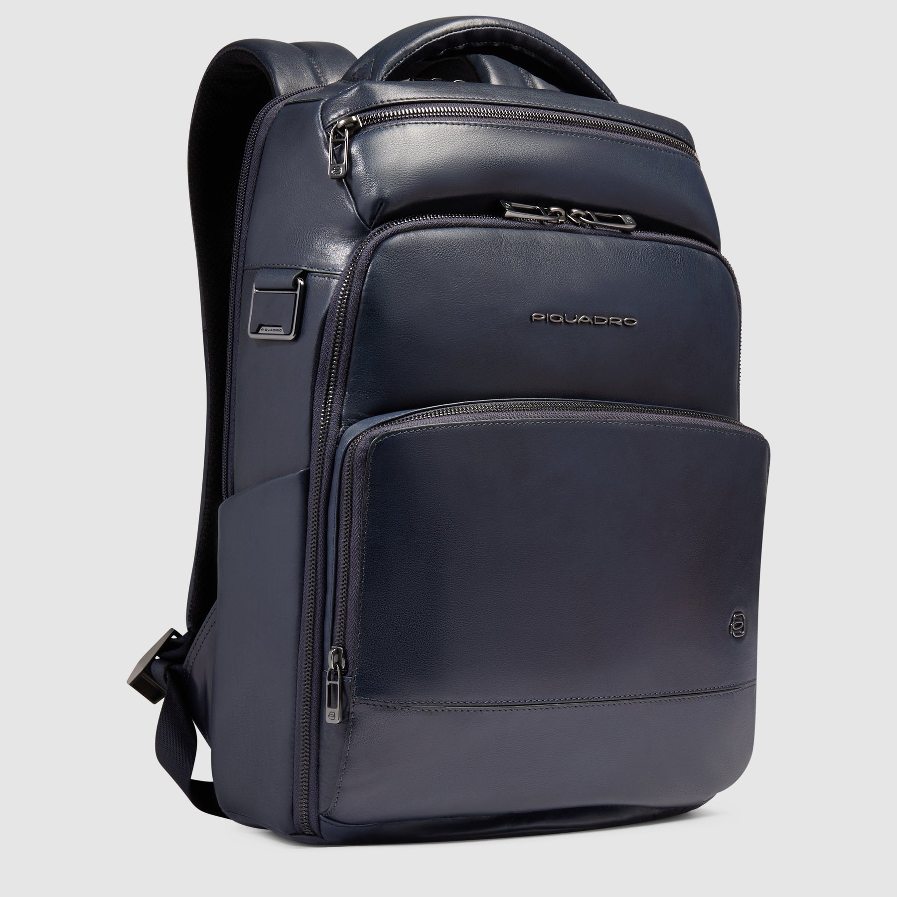 Piquadro New Classic Zaino Uomo Porta PC 14'' in Pelle Blu Elegante