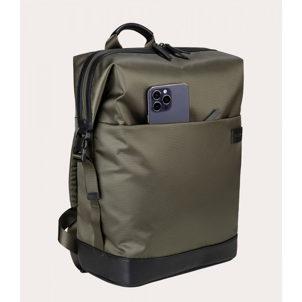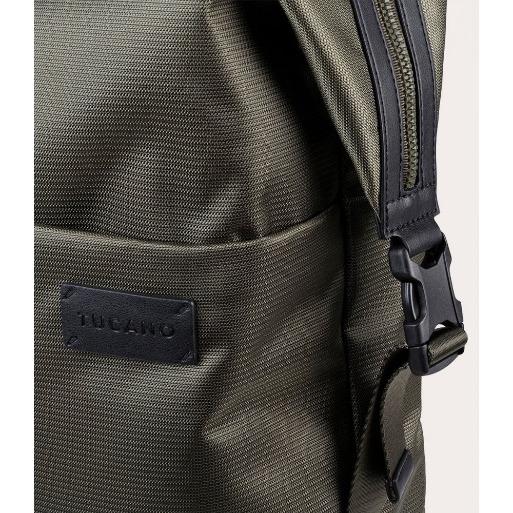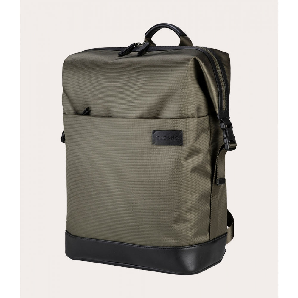 Zaino Tucano Modo Premium Porta PC 15-16'' in Tessuto Riciclato e Pelle Verde Militare