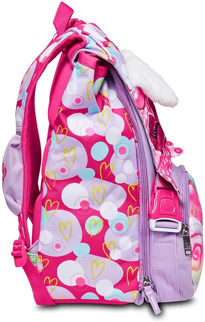 Una caratteristica unica che farà innamorare le bambine è il sistema ad aria attivabile dallo spallaccio con pulsante a pressione, che permette di muovere le orecchie glitterate in peluche. Questo dettaglio giocoso trasforma lo zaino in un compagno di giochi, oltre che in un pratico accessorio scolastico.