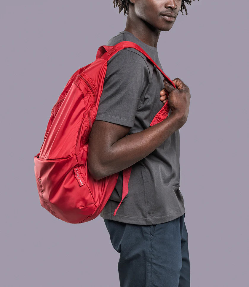 Zaino Tucano Compatto Eco Pieghevole in Tessuto Riciclato Rosso - La Soluzione Sostenibile per Ogni Viaggio