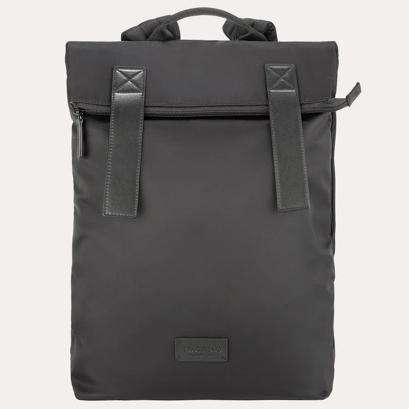 Zaino Tucano Fold Backpack Porta PC 15-16" in Nylon Riciclato e Pelle Nero