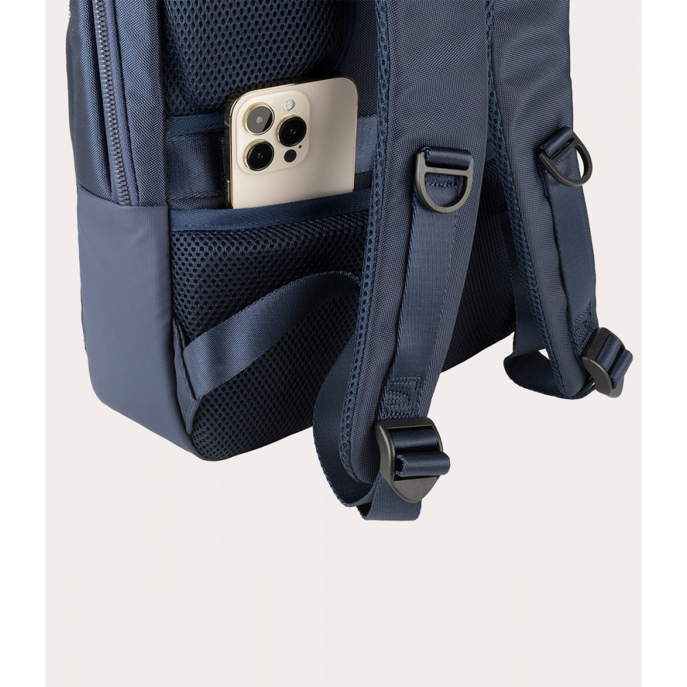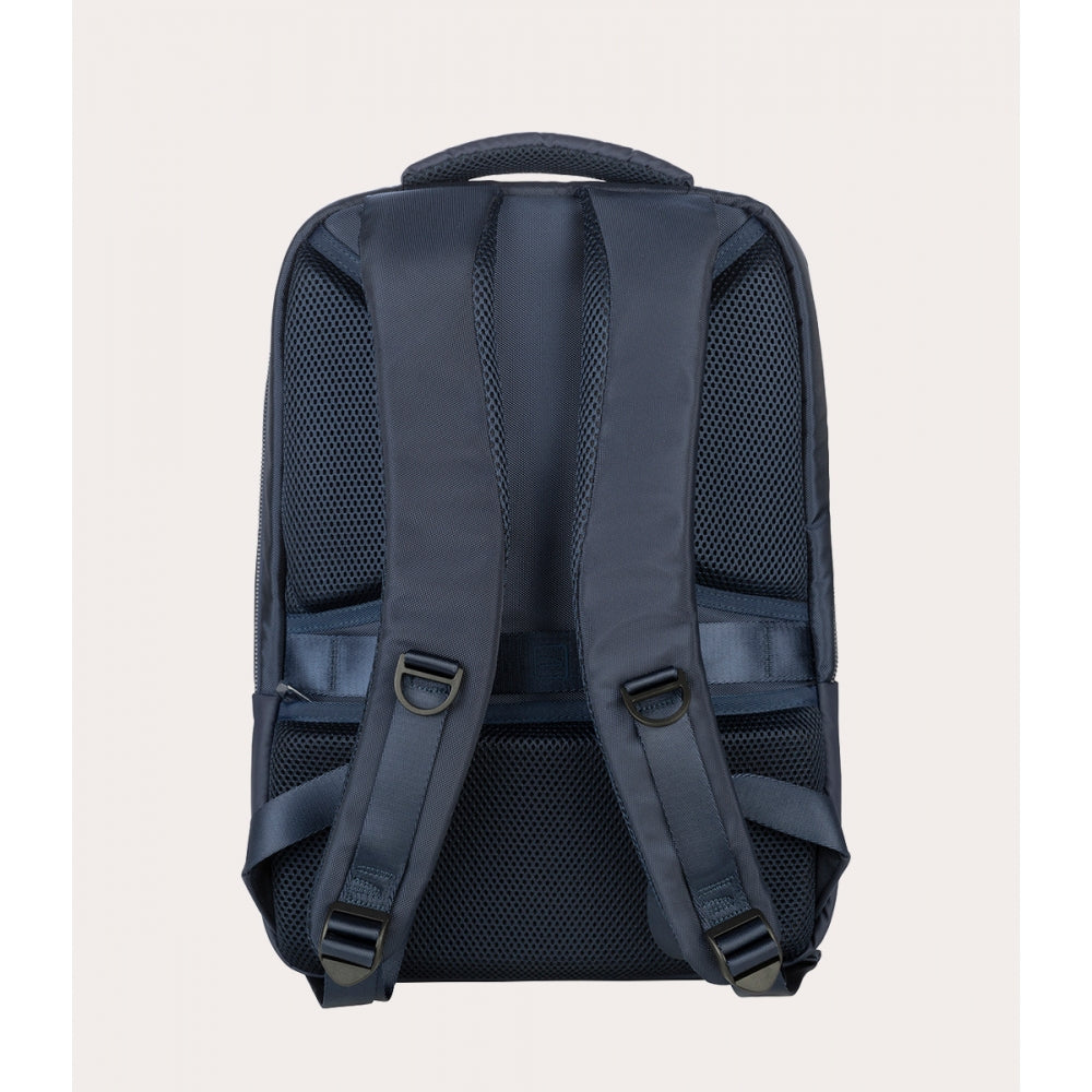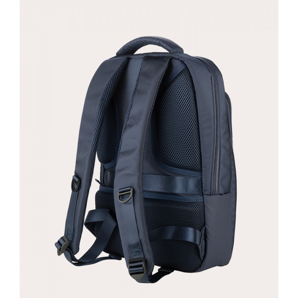 Il tessuto tecnico blu ad alta densità che caratterizza questo zaino non è solo una scelta estetica, ma rappresenta un vero e proprio investimento in durabilità e prestazioni. Realizzato in polietilene tereftalato riciclato al 100%, questo materiale innovativo deriva dal riciclo di ben 20 bottigliette di plastica, dimostrando come Tucano abbia saputo trasformare la sostenibilità in un vantaggio competitivo concreto. La finitura blu scura conferisce un aspetto elegante e versatile, perfetto per contesti professionali formali ma altrettanto adatto all'ambiente universitario o alle situazioni di lavoro smart.